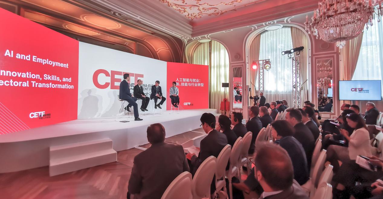 本届论坛以“共享、共生、共赢——拥抱智能时代,携手创新发展”为主题,汇聚了来自中欧政府部门、国际组织、跨国企业、高校及研究机构的150余位嘉宾,围绕人工智能与人才发展、产业转型、教育合作等议题展开深入交流。